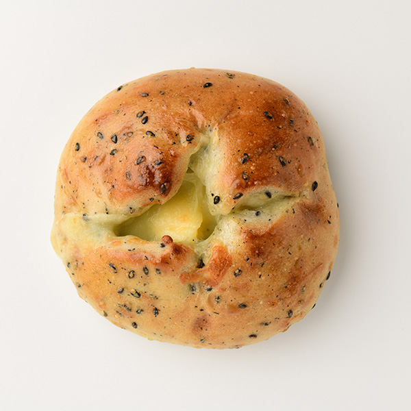 もちもち食感のごま生地に、たっぷりチーズを包みました。