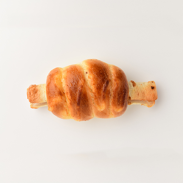 ちくわに明太フィリングを包み、もちもち食感の調理生地でまきました。